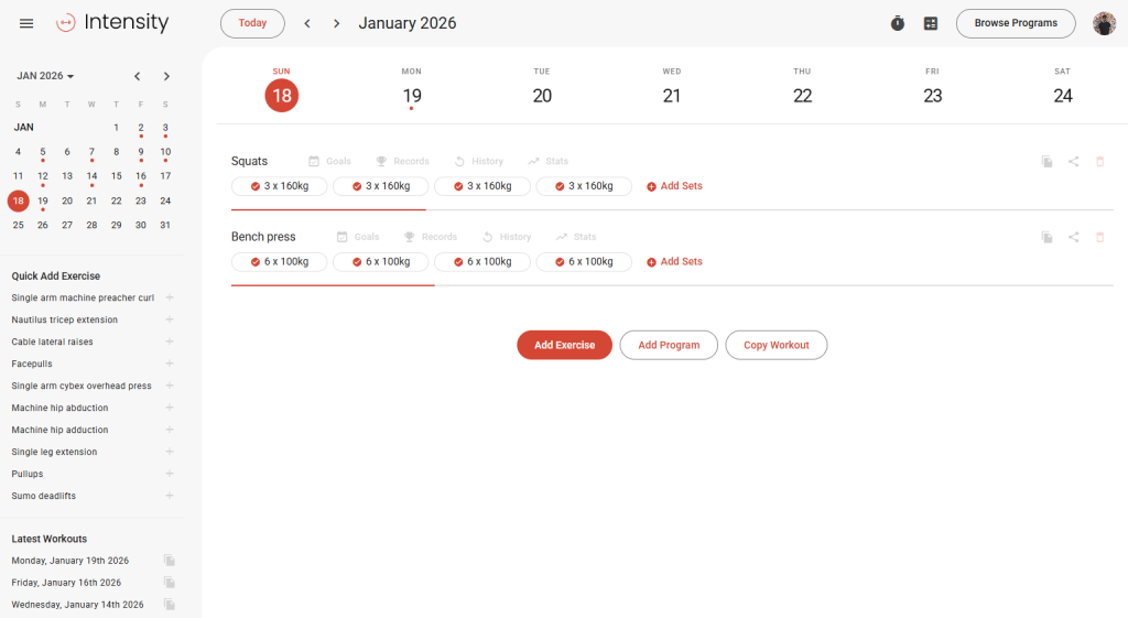 Copy exercises, workouts, and weeks, drag to reorder, and auto-extend programs with specific progression methods.